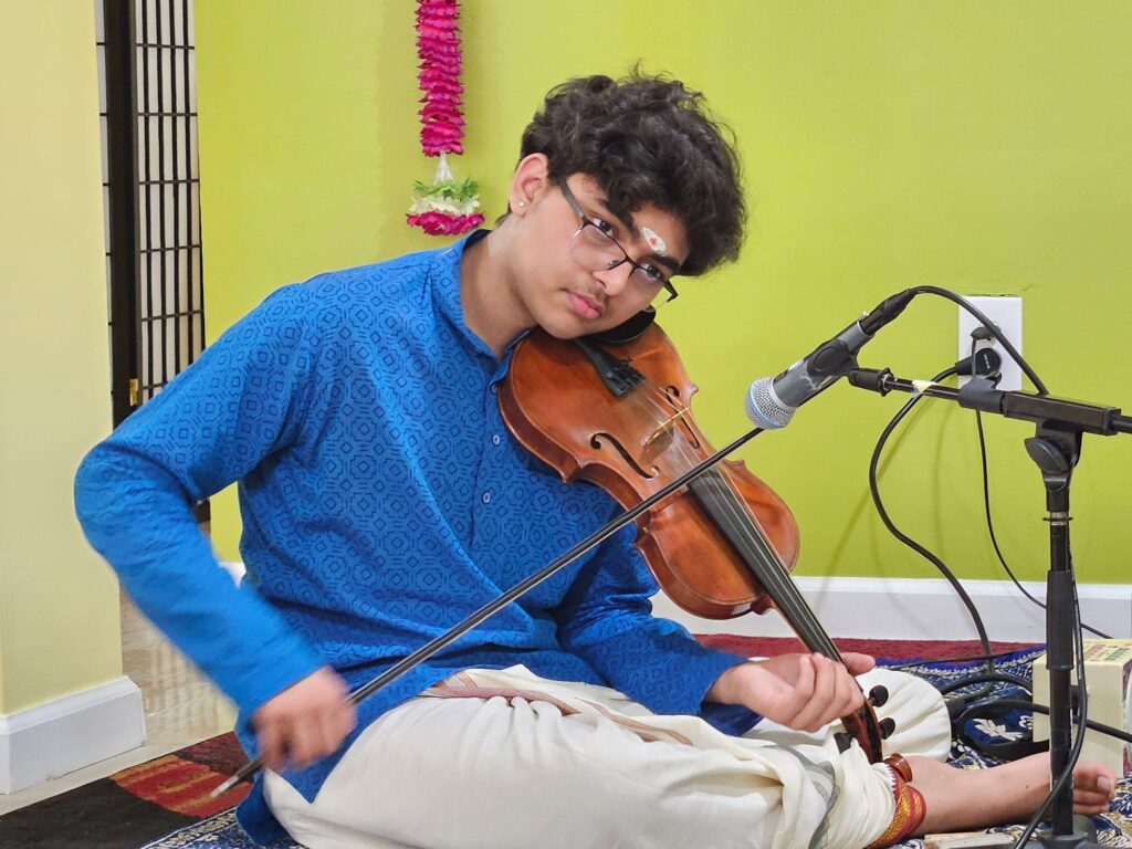 With the blessings of his Gurus, Sameth has accompanied over 225 concerts across the United States and India. His journey as an accompanist has brought him to stages both intimate and grand, including highly respected platforms such as the Chennai Margazhi music season, celebrated for its rich heritage and deeply appreciative audiences, and the Cleveland Thyagaraja Aradhana Festival, one of the largest Indian classical music festivals outside India. In each performance, Sameth strives to bring a combination of attentiveness, support, and individuality, contributing meaningfully to the overall concert experience.